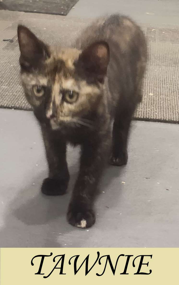 Tawnie is a cute and energetic tortie kitten who is always on the go. She absolutely loves to play. Some of her favourite toys are ping pong balls and while she is playing with them, she is like a one cat soccer team bouncing them and making them fly around the room, luckily, she has other foster kittens to play on the opposition team.