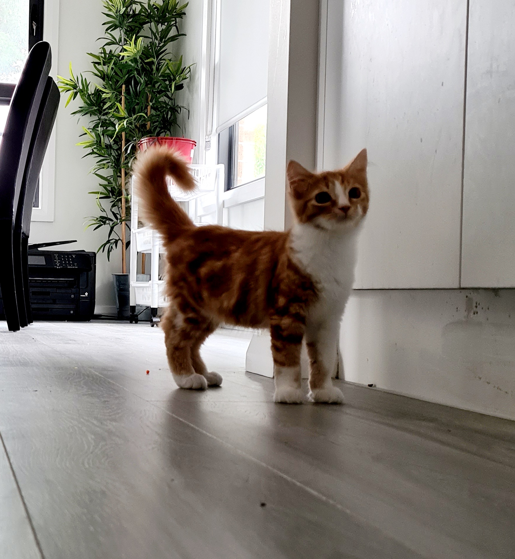 Hi! My name is Ferro! I'm a ginger and white domestic medium-haired kitten who is adventurous and playful but totally down for snuggles. You can even hold me like a baby, I don't mind. I am a 10/10 snuggler!