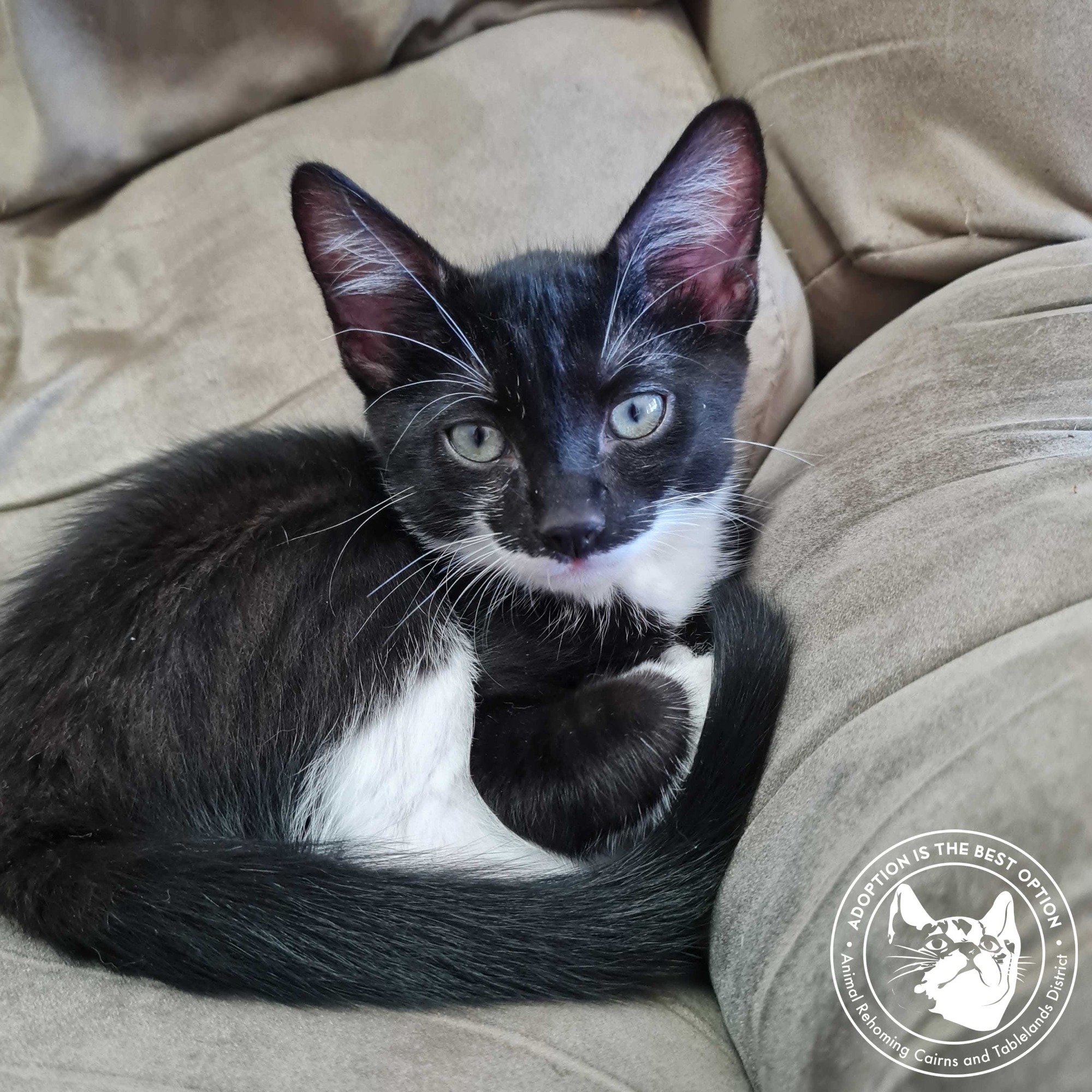 Quasi was born 05.10.2020. At first we thought Quasi was a boy. What a surprise to find out he was actually a she! She is the only girl of the litter of four babies that were found dumped at Curtain Fig Tree and despite our best efforts, we couldn't catch their mum so we hand raised them. Her foster family affectionately call her Juniper, or Blackie depending on her mood. This gorgeous girl is mischievous, but affectionate. Loves a warm belly to sleep on, but full of beans and loves to play. Can be independent but will seek you out for cuddles (especially if you have a beard lol). All her vet work has been done including desexing, microchip, vaccinations, flea and worm treatment. If you're interested in adopting this sweetie, please click on this link to complete our application form https://form.jotform.co/91463029063858 Alternatively you can email arcatd@hotmail.com