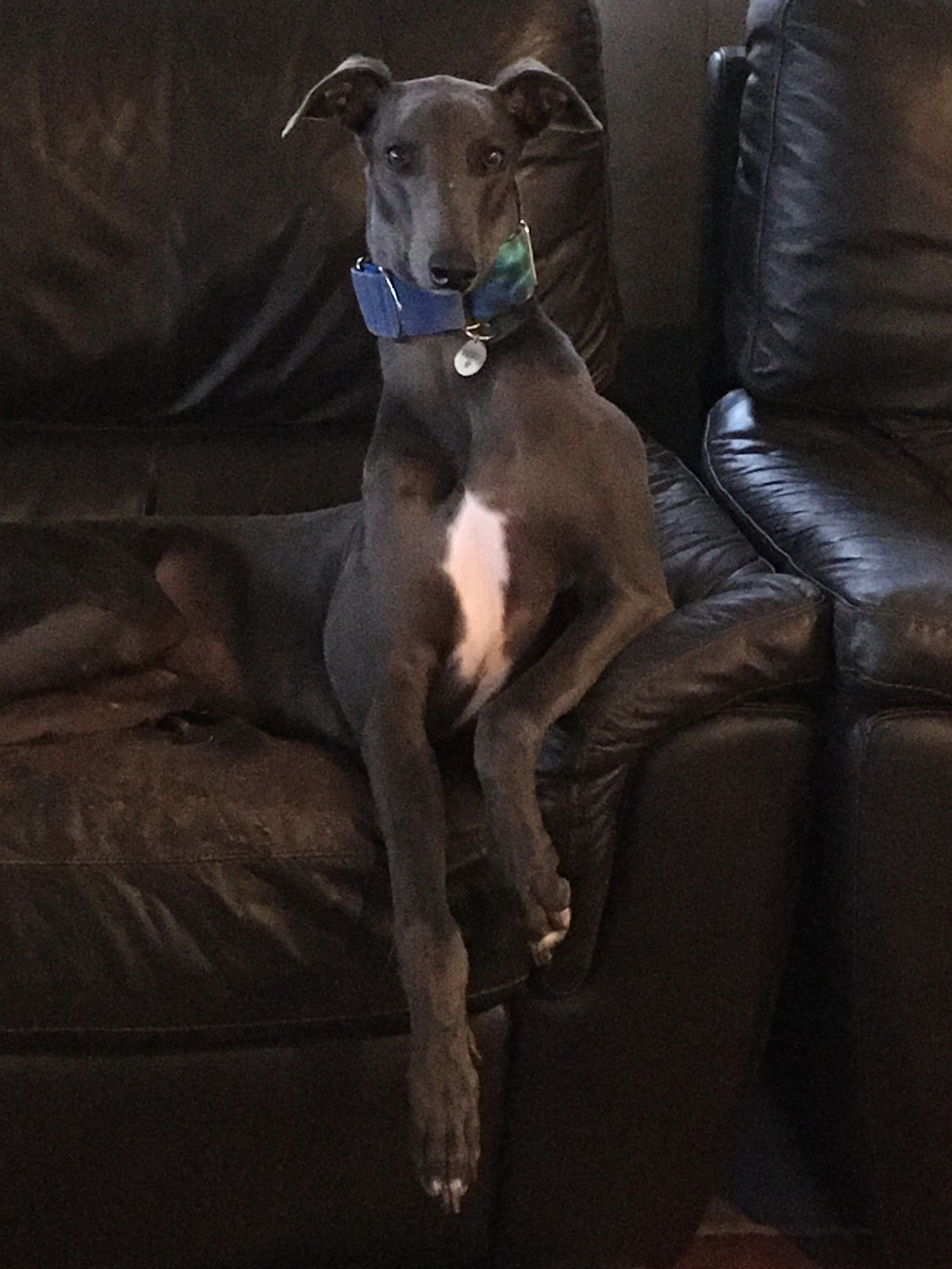 Pedro is a large, handsome, blue boy with a characterful overbite. Don’t let the good looks deceive you though, as he is really a big ball of goofy enthusiasm. He is still very much a puppy at heart, starting every day with a sense of excitement and anticipation of a visit to the park, a neighbourhood walk or his favourite, a game of fetch.