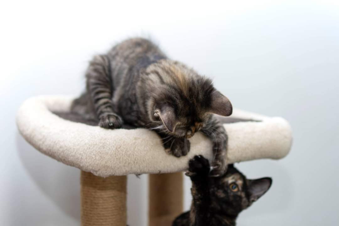Adara is quite a goofball, she isn't quite as agile as her sister when it comes to climbing the cat trees and chasing the laser light 🤣 But she looooves to play! All toys are super fun, especially balls. She is such a playful girl, does all sorts of goofy things during her daily zoomies 🤗