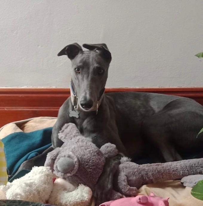 Blue will make you smile when he sinks into his bed and lets out a very guttural grandpa groan of comfort. Blue is very people-orientated and enjoys his own company, more so than other dogs, so would enjoy being the only household hound. Whilst Blue is happy-go-lucky and has been enjoying his time in foster care, he’s still learning to navigate socialisation with other dog breeds (other than greyhounds). He will need continued socialisation and training but has positively interacted with a calm, gentle whippet on one occasion.