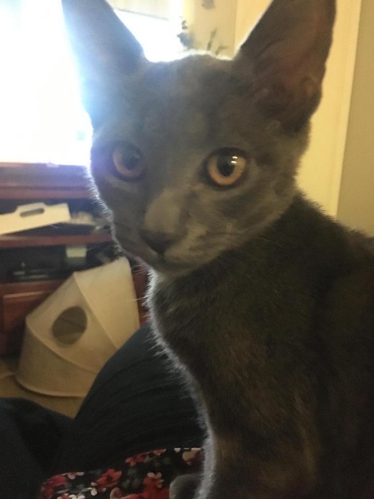 Beautiful Grae came to us unclaimed via the pound 0 a sweet and cuddly kitten who enjoys curling up in your lap. In foster care with an older feline cat; Grae is not too bothered to share her space; to the resident cats disgust. A popular blue/grey colour and fur almost like satin - is she the right fit for you?