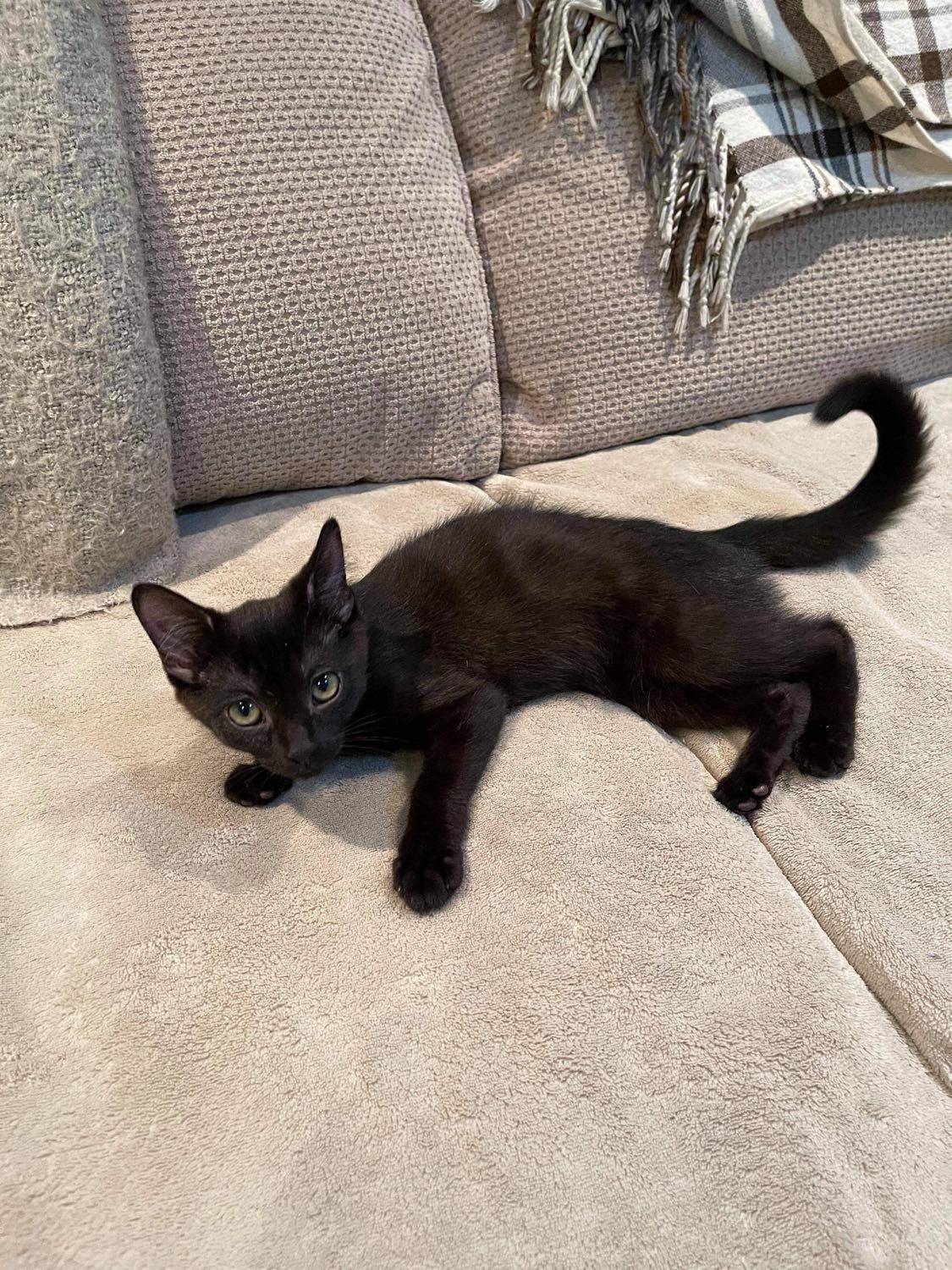 The black kitty, Cherry, is a talker. Super chatty and vocal she'll tell you all about her day.