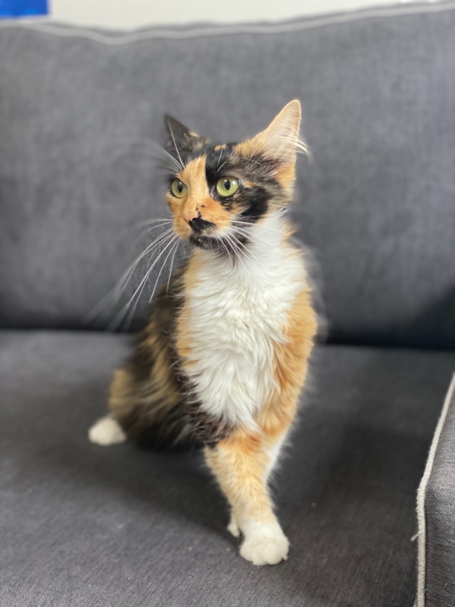 Valentine was dumped on our doorstep overnight with her four beautiful kittens. We have no idea how someone could do that to her as she has the most gorgeous shy but smoochy personality. Her kittens have been weaned and she is looking for a new home.