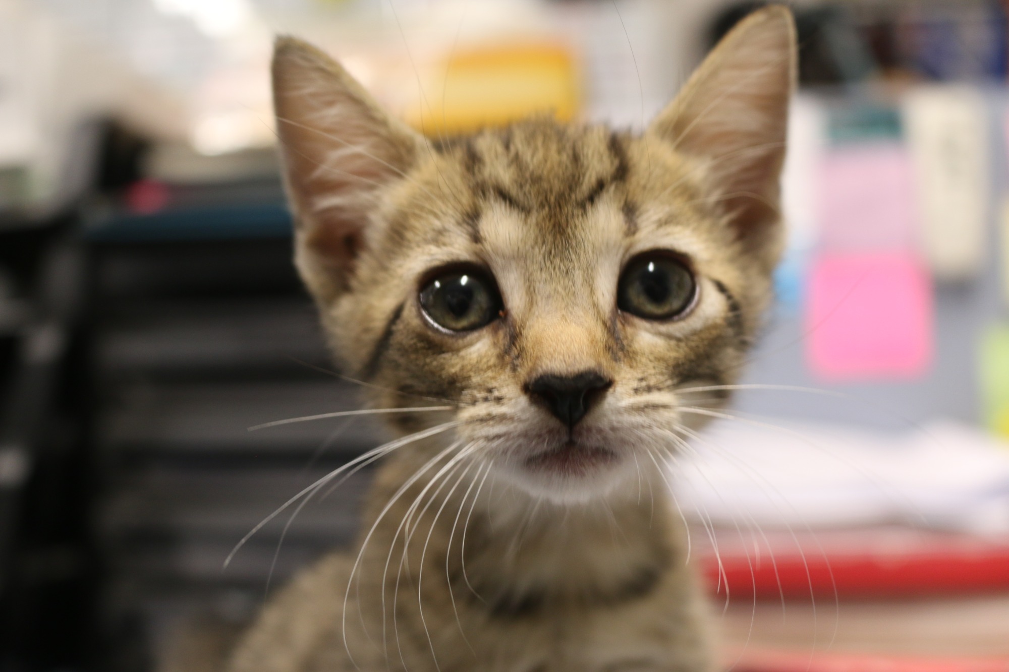 Sadie is a typical kitten, full of playfulness and curiosity. She is currently housed with her 6 brother and sisters and they love to play and get along with each other very well.