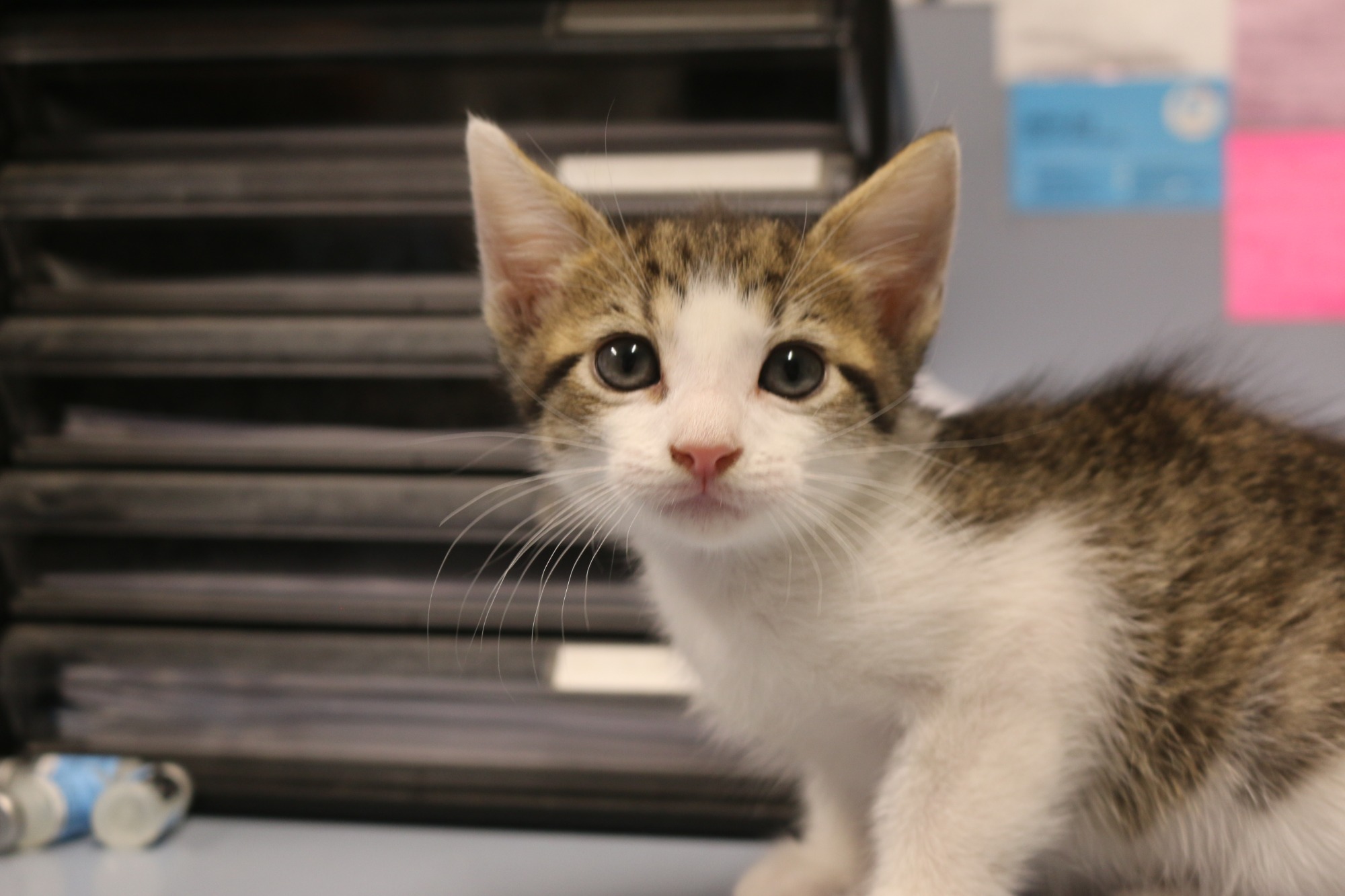 William is a typical kitten, full of playfulness and curiosity. He is currently housed with his 6 brother and sisters and they love to play and get along with each other very well.