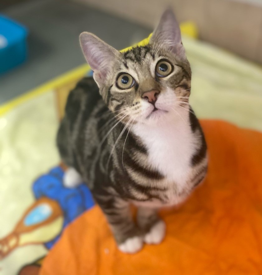They are all tabby with unique markings. All have wonderful playful personalities.