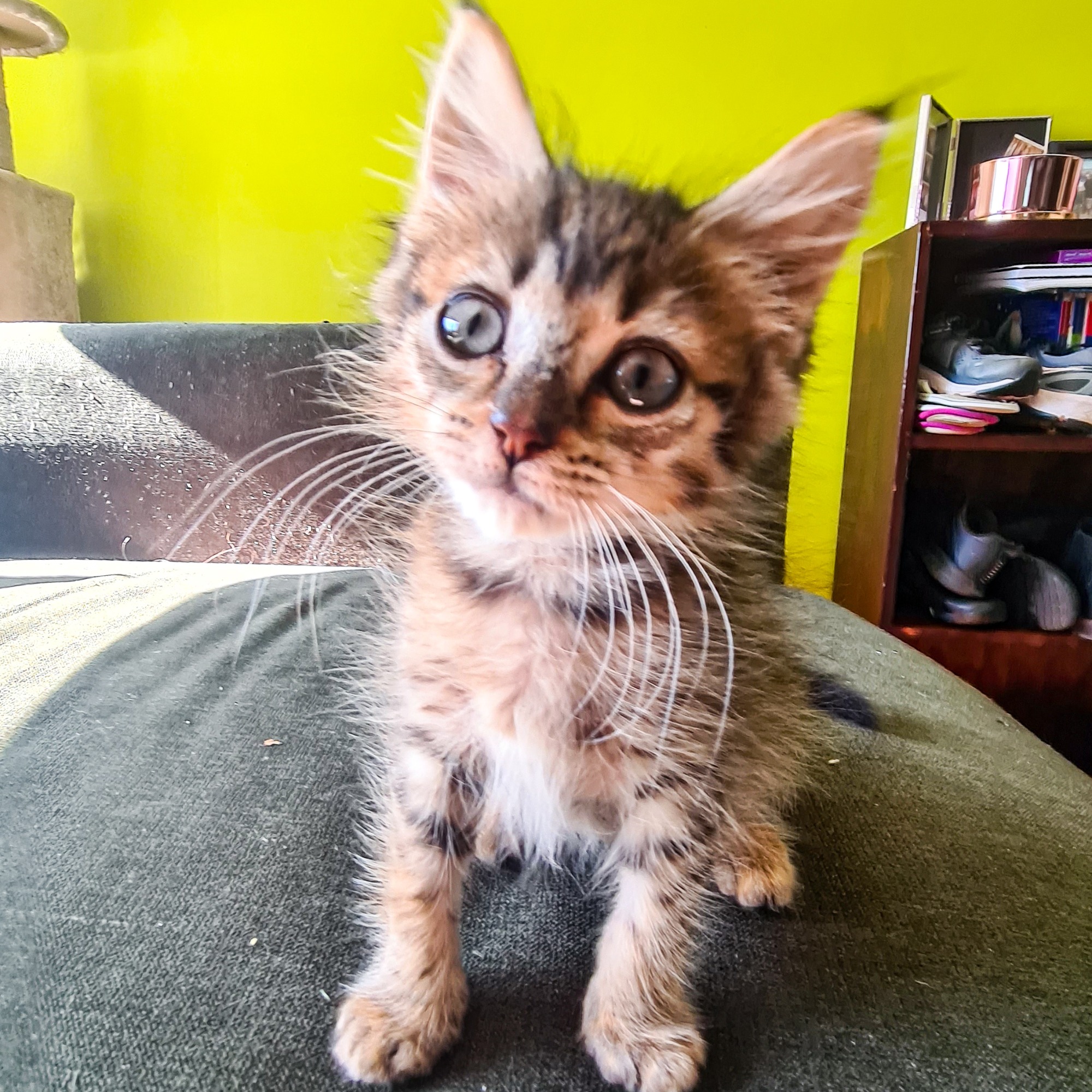 I am now fully litter trained and I’m not fussy with food. I want to find a loving family to call my own who will keep me safely inside with them.