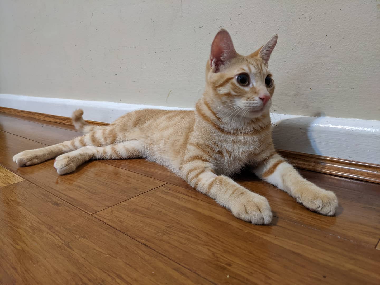 ABOUT ME: Hi I'm Mr G and I'm the friendliest angel ever and I am so calm and chilled and love spending my time being picked up and then having a snooze in any random lap on offer. I also love my foster buddy and resident cat and enjoy following him on his play adventures.
