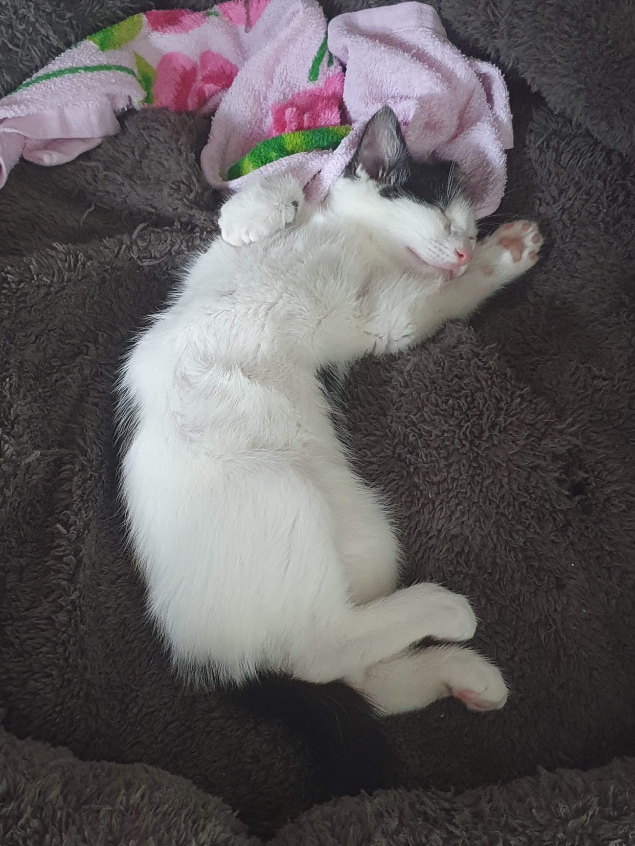 During nap times, you will find her snuggling with her feline friends or looking for a spot on your lap. If she's not resting on your lap, you will find her asleep right next to you after you realise you've fallen asleep on the couch with the telle on.