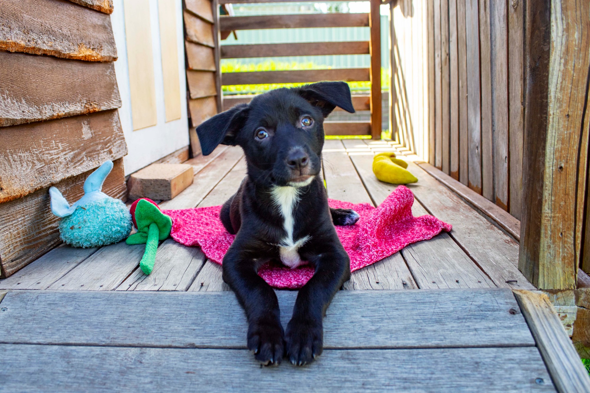 Meet Minnie, she is a Kelpie x Cattle and 9 weeks old. Minnie is a smoocher and loves cuddles and snuggles, she is playful and loves chasing a ball.