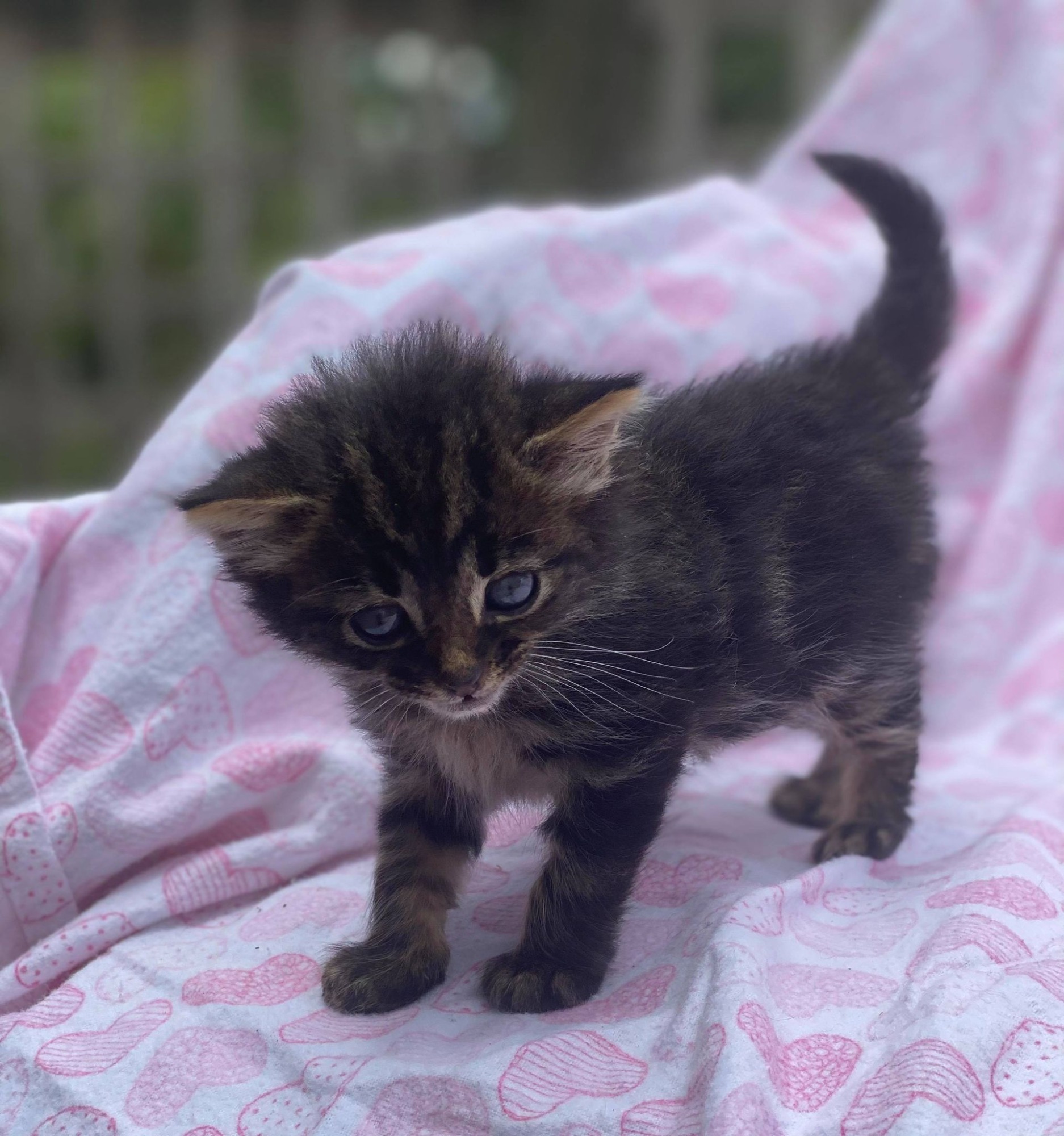 Sigi is a tiny but mighty little kitten. He and his siblings came into care at a young age so he is very confident and willing seeks out human attention and affection. Sigi is a very sweet natured and playful little kitten who adores the company of his foster mum and seeks out her lap whenever he can. Sigi loves playing with his siblings and other foster friends, he would love a home with his brother Bjorn or another furry playmate. Sigi will bring joy and affection to whoever is lucky enough to adopt him.