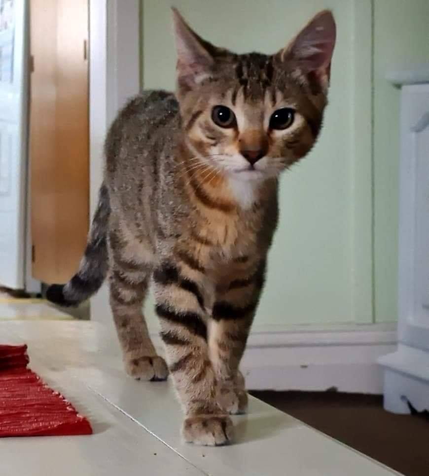 Our handsome Tabby Fellow Juju is now ready to start the search for his new home. Juju is an active and playful kitten that will run to his foster carer for pats. Juju is ok around being picked up providing you don't hold him tightly.