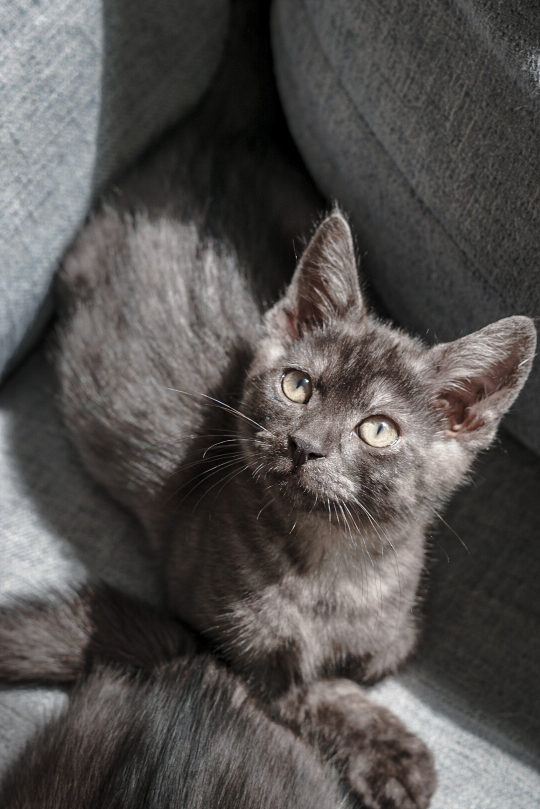 Arthur is a handsome 12wk old ‘smoke’ DSH kitten with so much personality! Arthur always makes his presence known with a little squeak when entering a room, not that this is necessary though as despite being tiny, he and his brother sound like a herd of elephants running down the hallway.