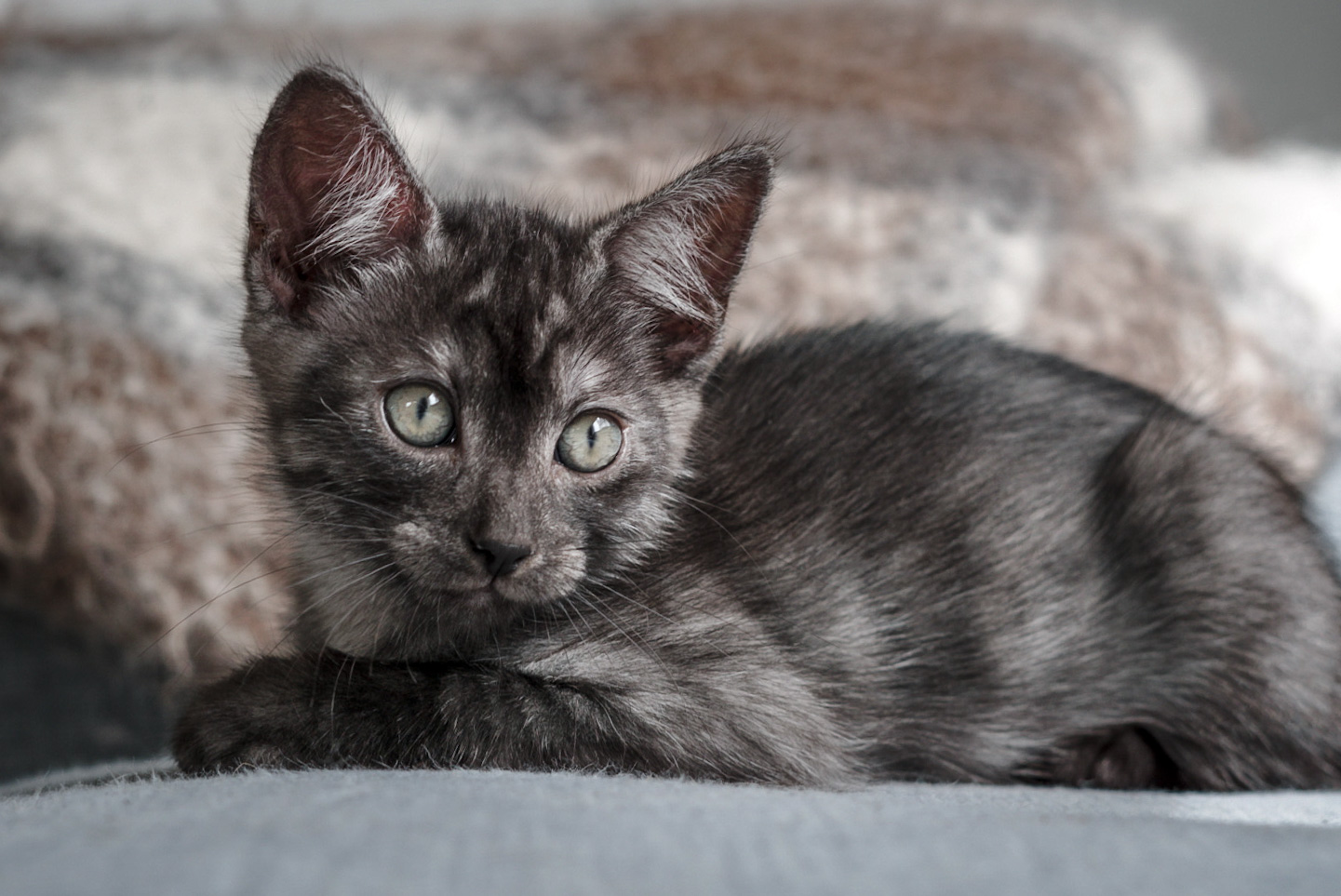 Timmy is a dainty little 12wk old ‘Smoke’ DSH. He is such a fun little fella to have around the house, he loves playing, climbing, zoomies, and pot plants. Despite being petite, you can hear his purr from across the room!