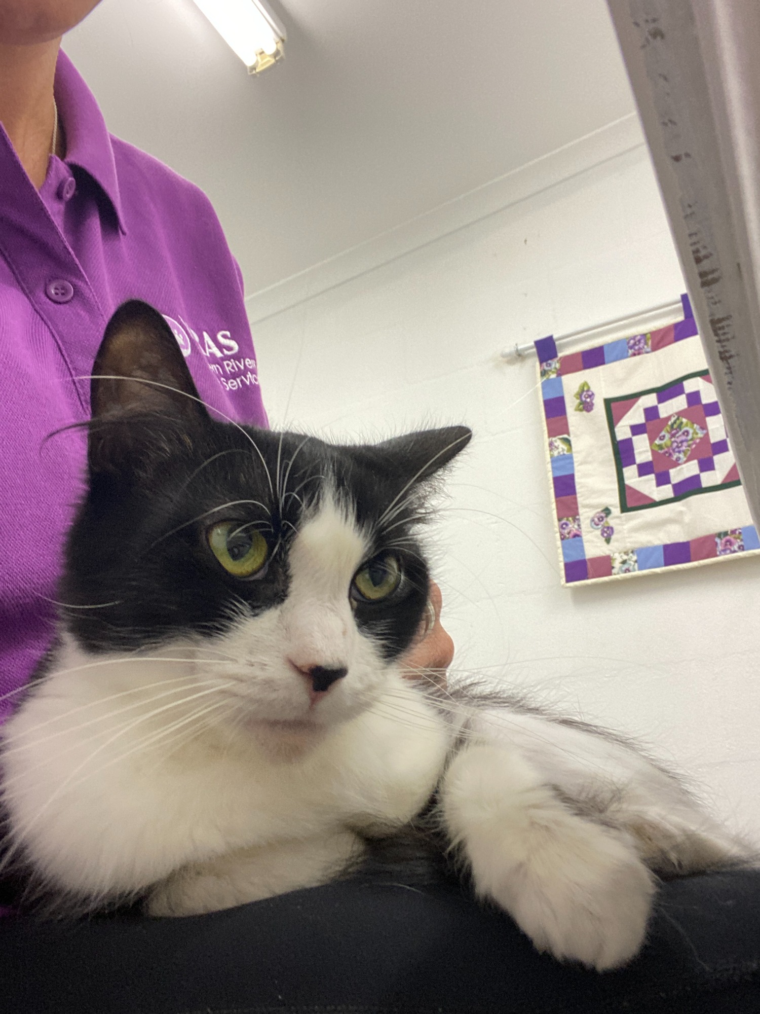 Panda is a lovely, gentle girl, she was very shy at first but has developed into a more relaxed cat that loves a pat and tickle. She is very close to her mum, Peppa, and it would be a lovely outcome if Peppa and Panda were adopted together. Mum (Peppa) is very protective of her, but since being at the shelter Panda has exhibited far better social skills and they would be a happy addition to any home.