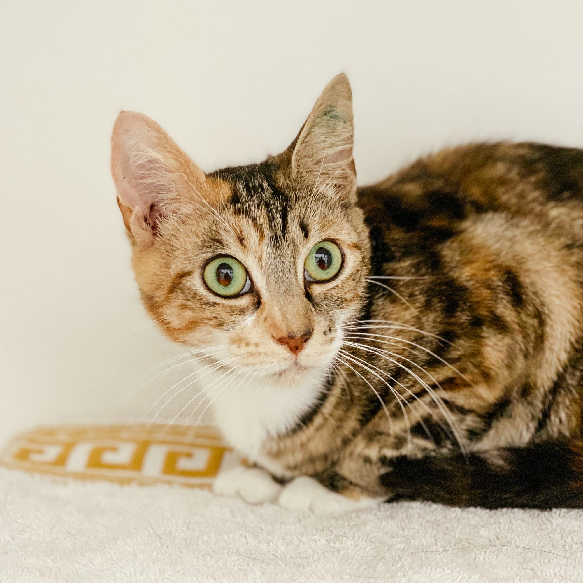 I enjoy getting pats and scratches behind the ears. I’m very playful and love to bat around toys. Sometimes I can be a bit too 'enthusiastic' with playtime, so it's probably best if I don't live with young children. When I’m done playing I will wander off in search of the perfect comfy place for a nap.