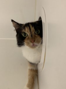 Tara is a beautiful Calico cat, calm and chilled. She enjoys being patted and purrs in appreciation but it has taken her a while to get used to the fact that her situation has changed.