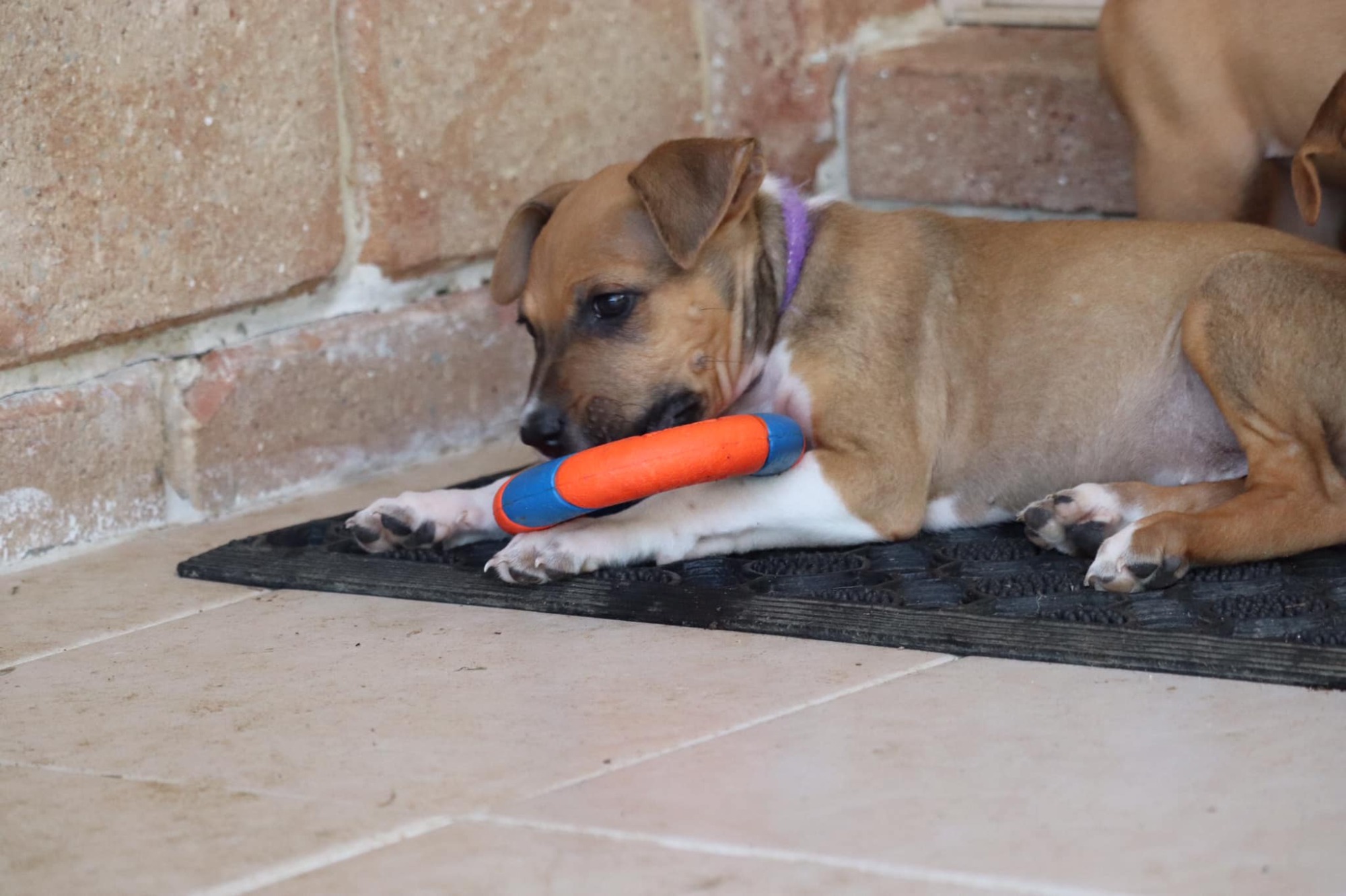 I enjoy playing with my toys, chasing a ball and a game of tug-of-war with my soft toys. I also love a good romp and play with my siblings.