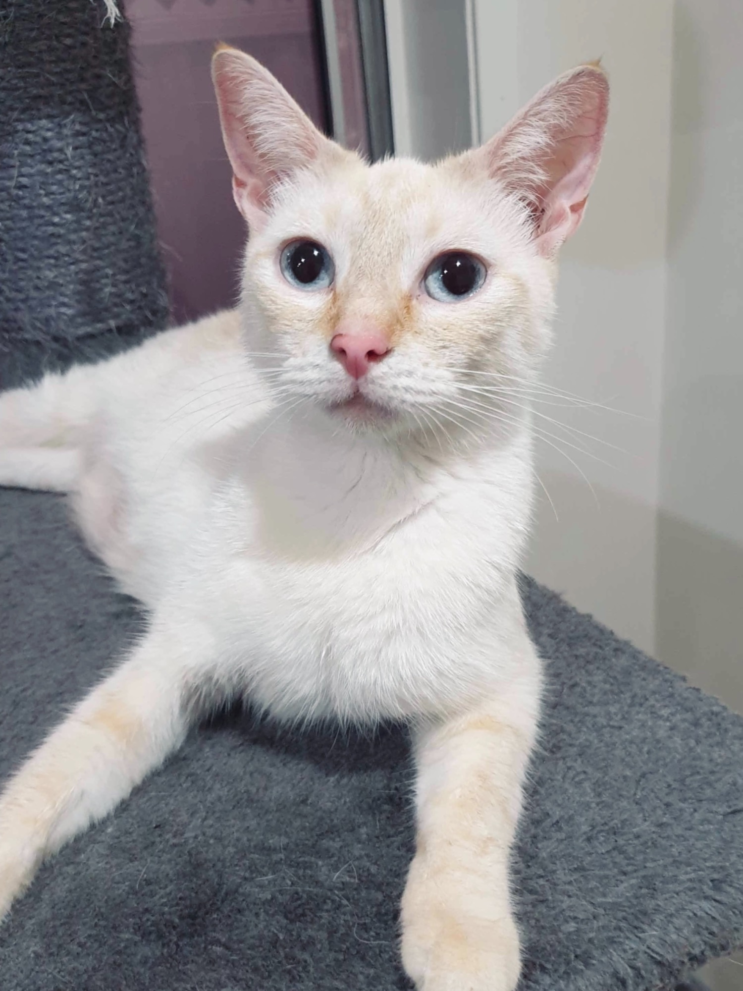 I’m almost 2 years old (roughly) and a mix of DSH (Domestic short hair) and Siamese with gorgeous blue 👀.
