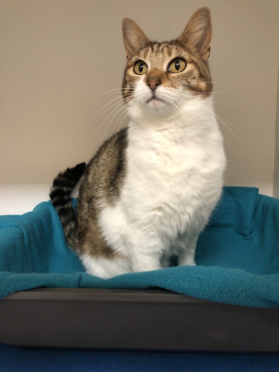 I’m a sweet, gentle girl who loves scratches under the chin and behind the ears. My favourite things to do are play with my toys and watch the world go by through the windows. I also love giving head butts!