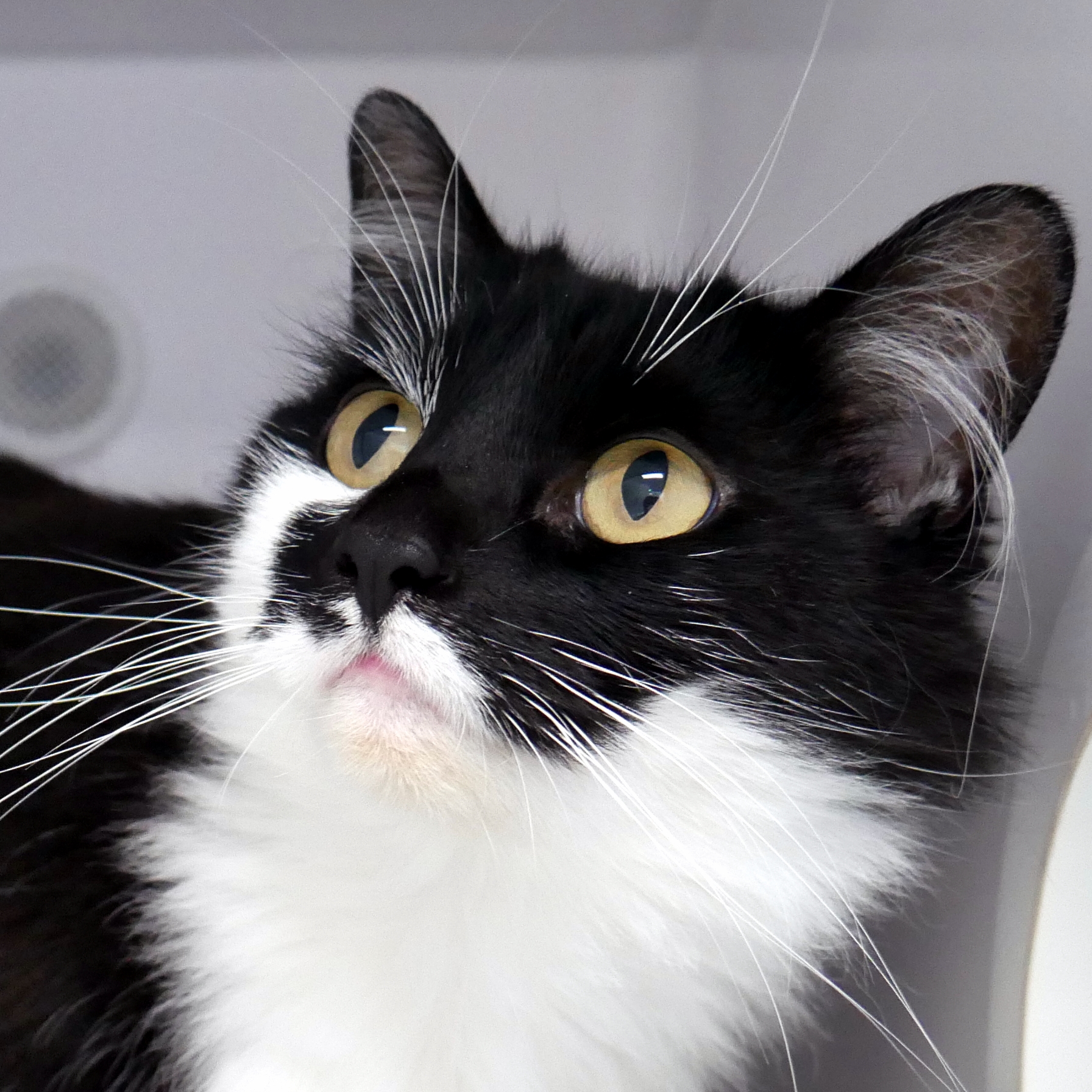 Missy is a beautiful lady who is affectionate and relaxed but also still quite playful. She likes to be around her humans and curl up on a lap or keep you company in bed.