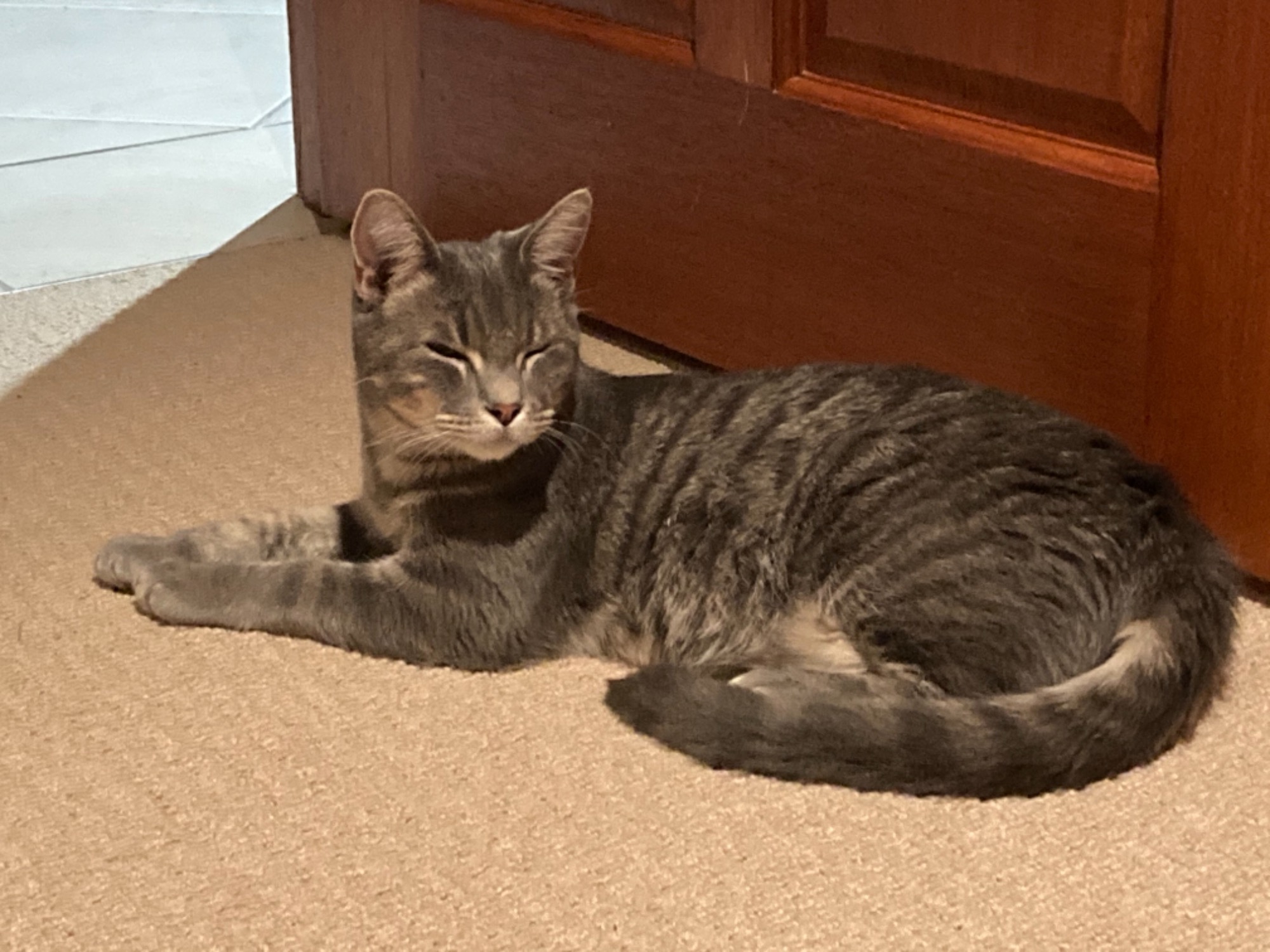 Smokey is a lovely Blue Tabby, that loves cheek rubs, head bops and the Ladies, with a super soft coat, he loves company and will weave in and out of your legs or curl up some place comfortable. He is a little nervous around Men.