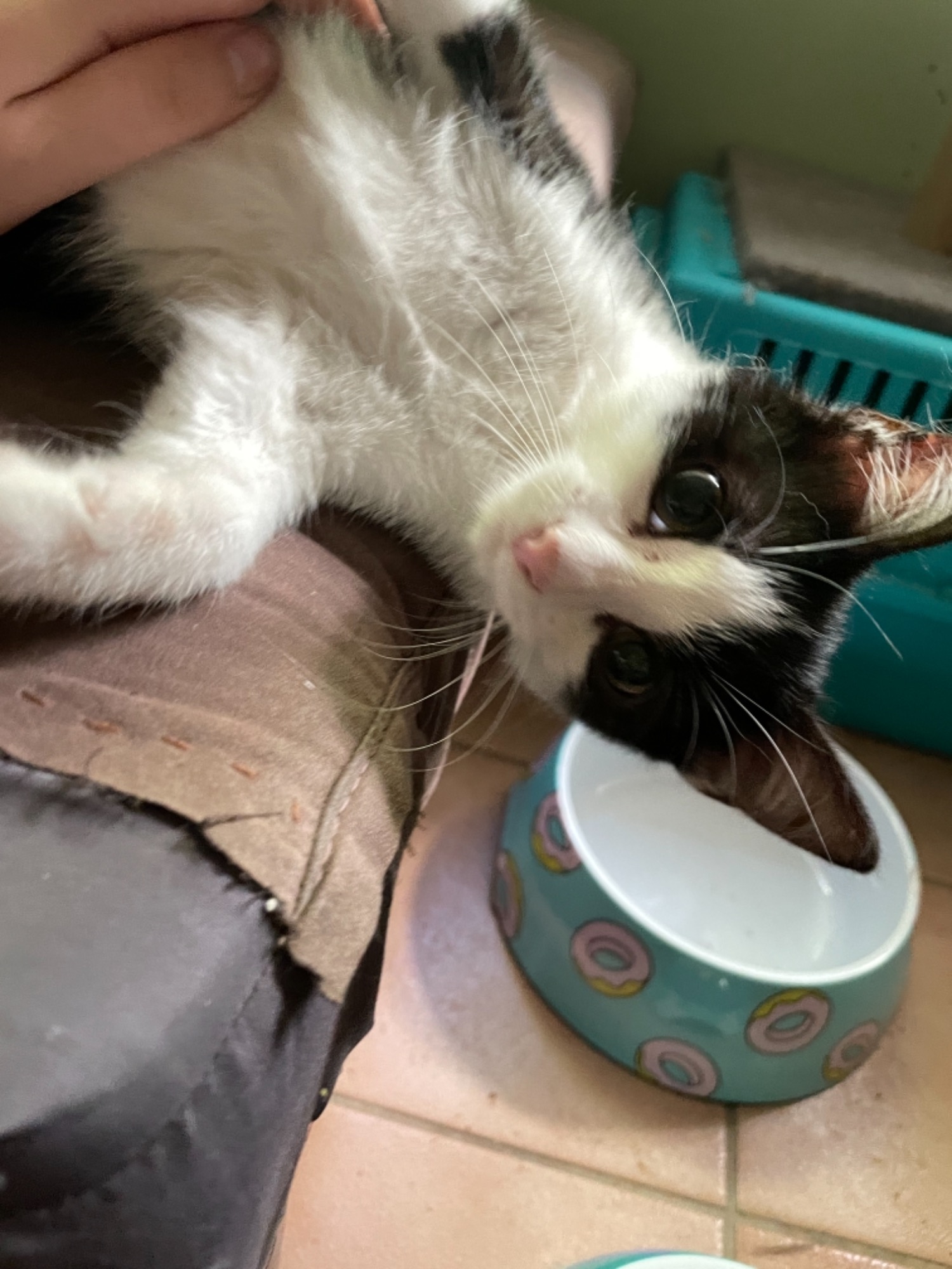 This little boy is always dressed to impress 😂 he is the most affectionate kitten around his has literally climbed his foster carer to get cuddles and kisses, he is just like this mother in the way where he loves to talk.