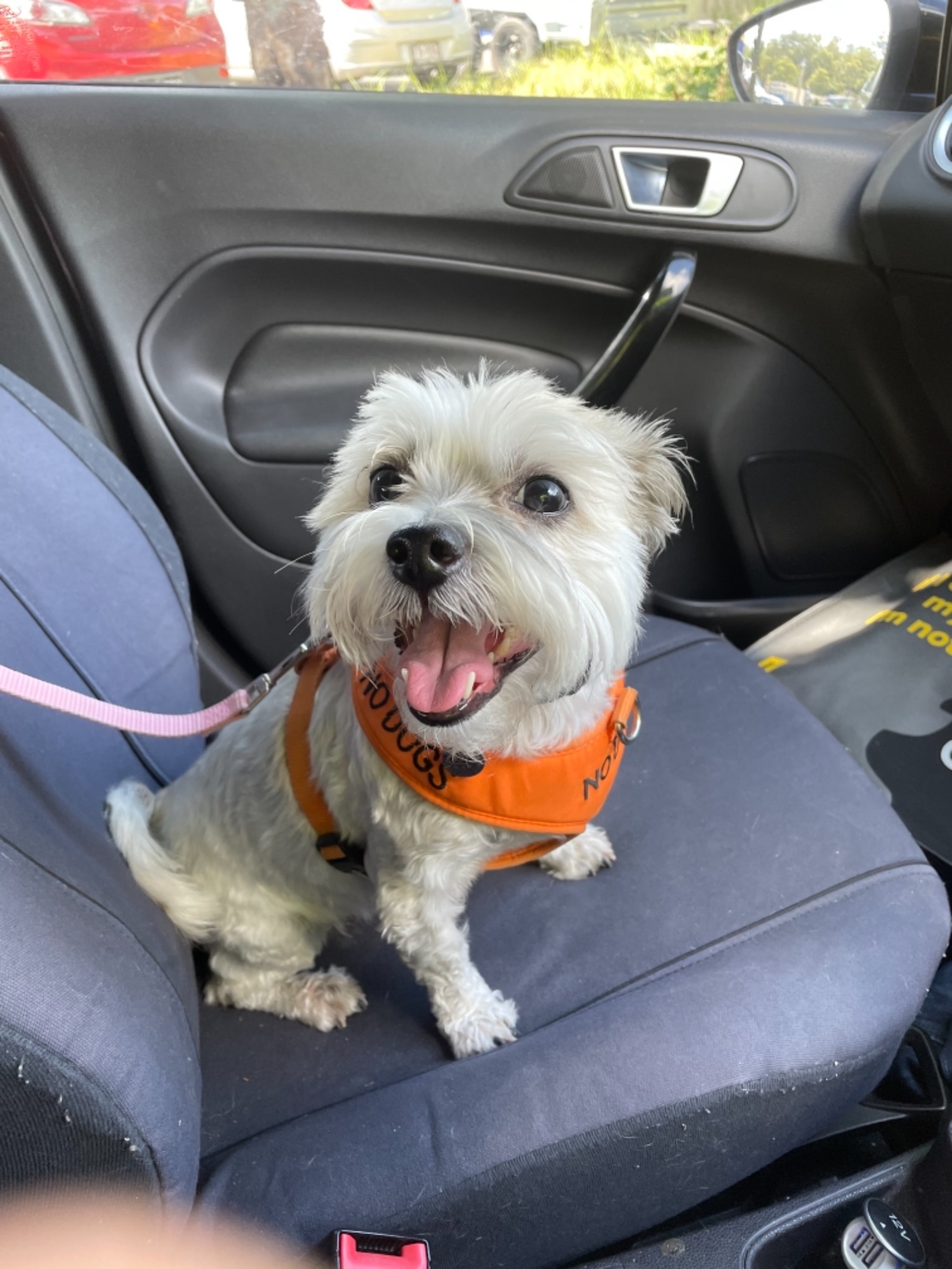 She needs to walk with her harness on tightly as she is very reactive to other dogs. But with her carers at the moment, if she is corrected by her handler she responds very well.