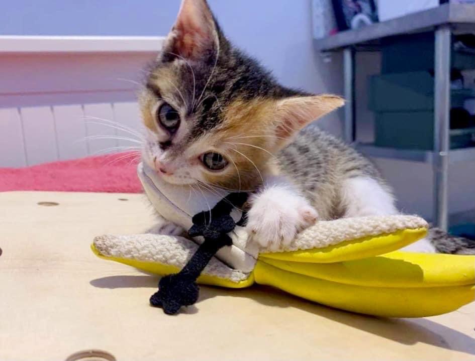 This little tortoiseshell, tabby kitten is sweet and stunning 💖 Dorothea loves to be cradled like a baby and to have her belly rubbed too 😴 This kitten is a little bit sassy, and a whole lot playful! 😸 Dorothea is the ringleader of her foster siblings and LOVES to play and climb way up high 🌳 Her favourite toy is a dangling little bird, and she will dazzle you with spectacular leaps into the air chasing after it! 🦜