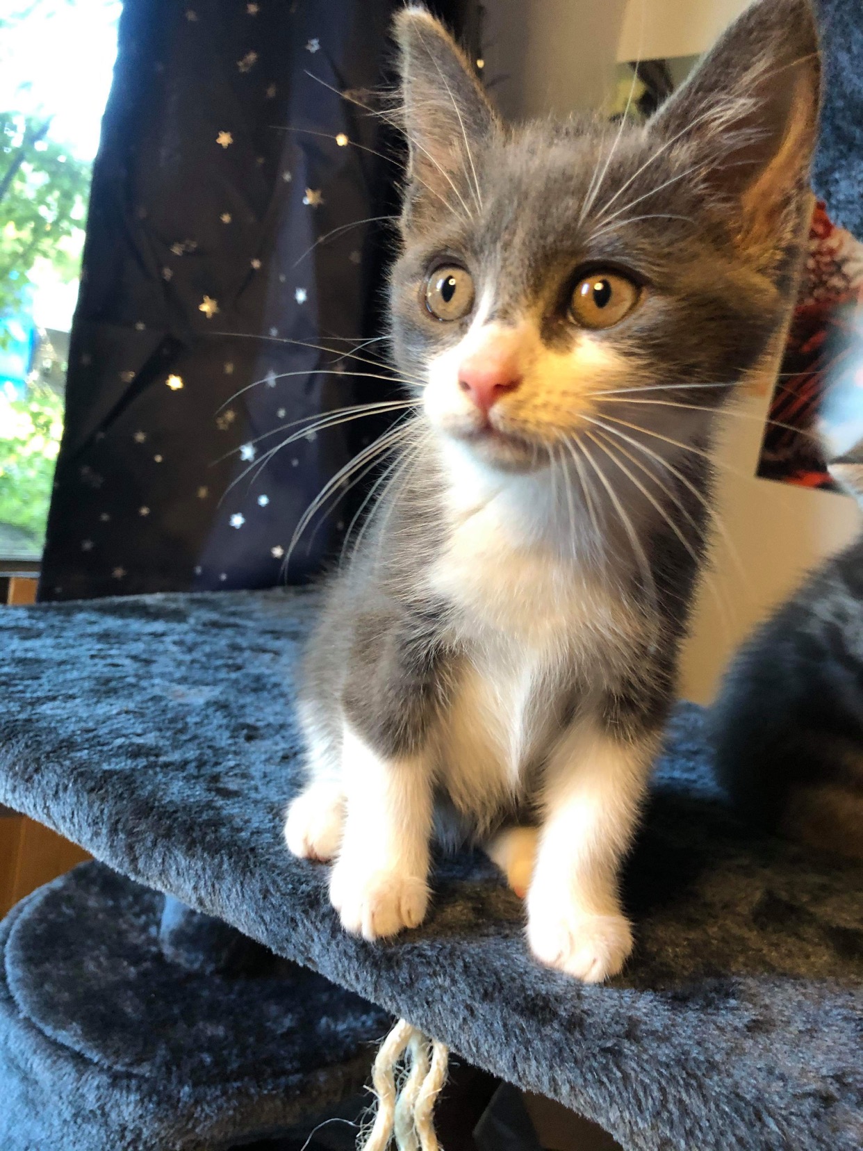 Caye does whatever she wants whenever she wants like climbing all over you trying to get a taste of some new food, playing inside a box, having a nap while all her siblings are roughhousing in the lounge or just wanting to cuddle with you on the couch.