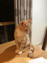 Shoga (Ginger) is a very soft and calm kitten. He will come to you and is happy to be held and patted. He will lay on his back and allow his belly to be rubbed. He will even follow you around and lay next to you. He purrs as soon as you rub his chin. He is good with the kids so will suit a family with young kids as well.