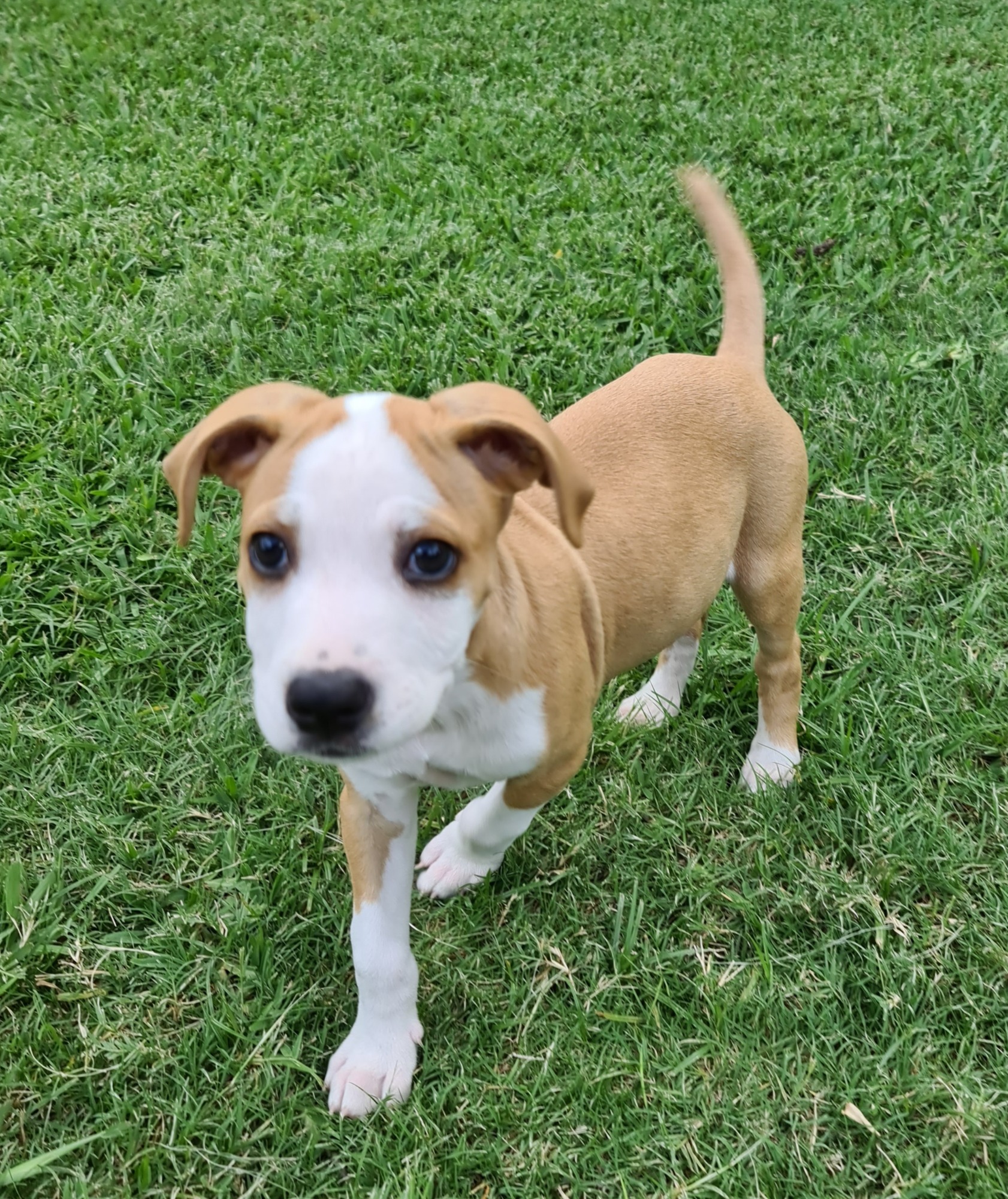 I am an all-round nice pup. I like to play with dogs of all sizes and am very tolerant of the more cheeky pups in my foster home. I would really love a playmate in my new home, who could be my best friend. Currently, I have my litter brother in care with me and we play constantly and snuggle up together every nap time. Do you think your dog would play with me and cuddle up with me too?