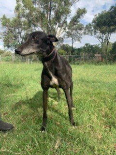 Ada is an Ex-racer and has lived with other male and female dogs one being a male German Shepherd. Ada is toilet trained and has been around livestock with no problems.