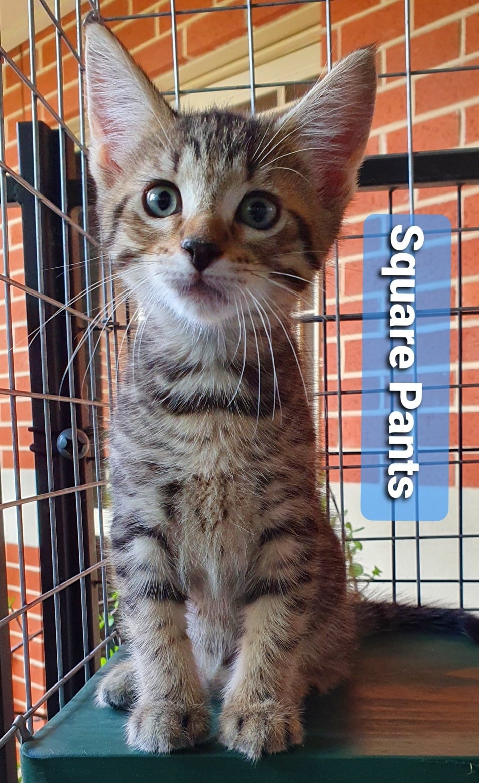 Square Pants goes to his new home flea and worm treated, fully vaccinated, desexed and microchipped. His adoption fee is $250.