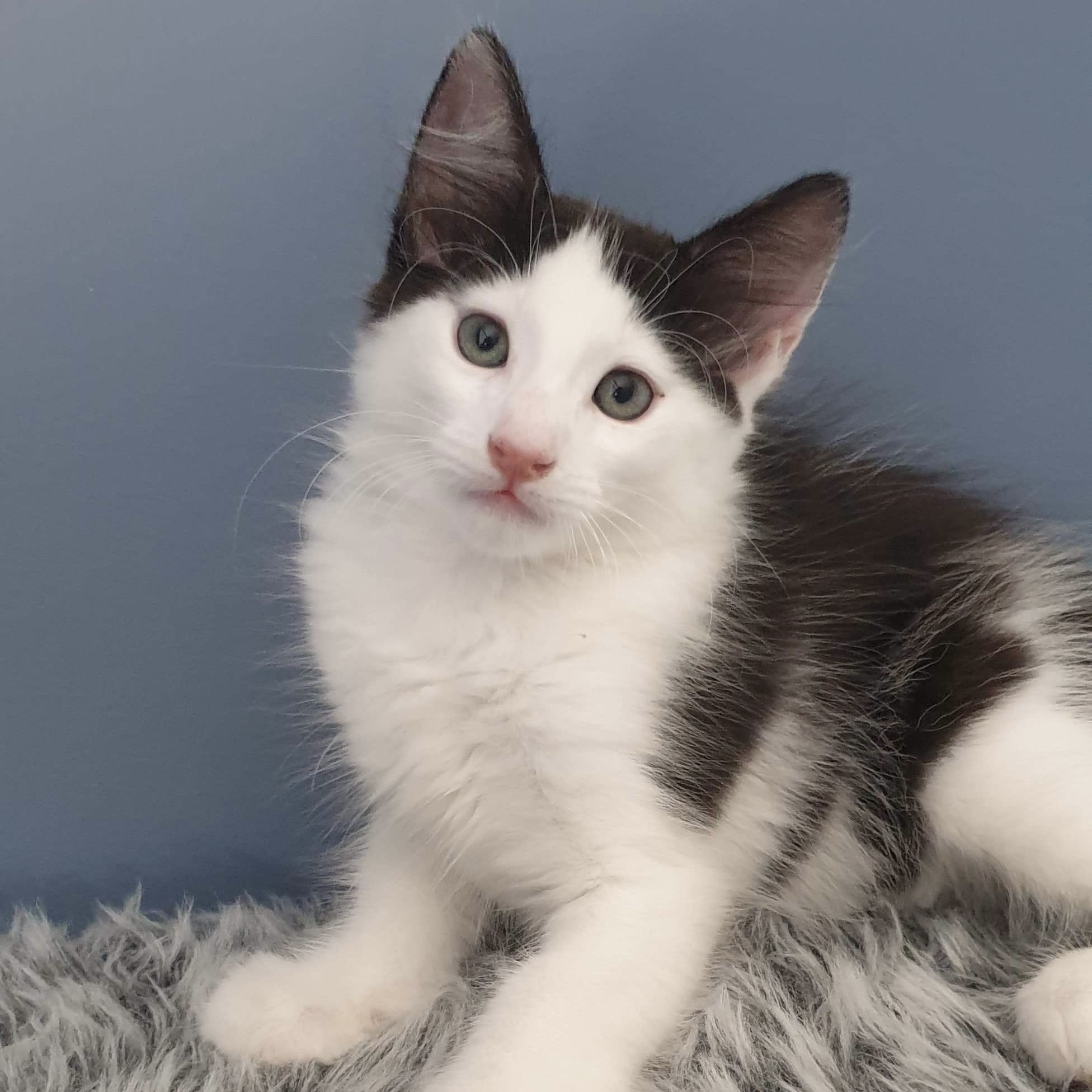 With pink blotches on his nose and ears, Cornelius will need an indoor-only home for his safety and well-being. Due to his longer coat, regular brushing will be required to prevent knots and discomfort.