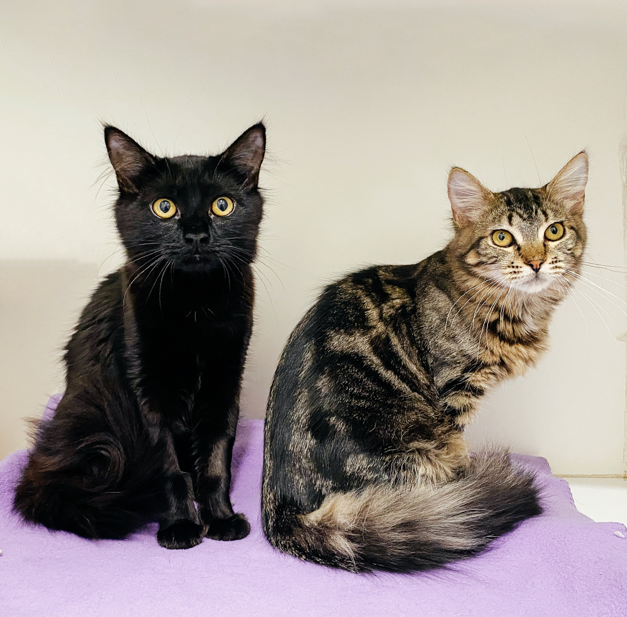 My name is Hallie, I’m the one with the luscious black coat, and the cute tabby to the right is my sister and best friend Sally!