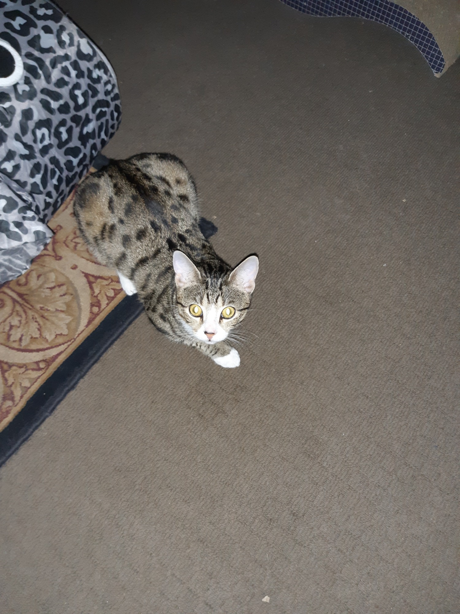 Very friendly good with other cats, looking for her forever home. Sleeps next to you likes to be close. Very affectionate. Was found outside the shop in a box. She is a true rescue cat that wants to be part of your family.