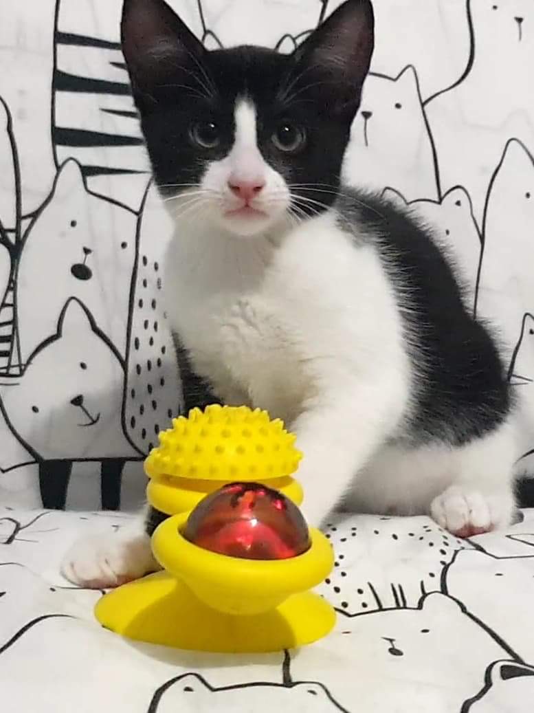 Cosintino always greets their carer at the door and loves a cuddle. Cosintino is usually the first to meet us and loves to weave around our ankles with affection. After hours of play time, Cosintino loves sitting with his carer or cuddling up with his siblings. He greets everyone with chirps, especially when it's time for food.