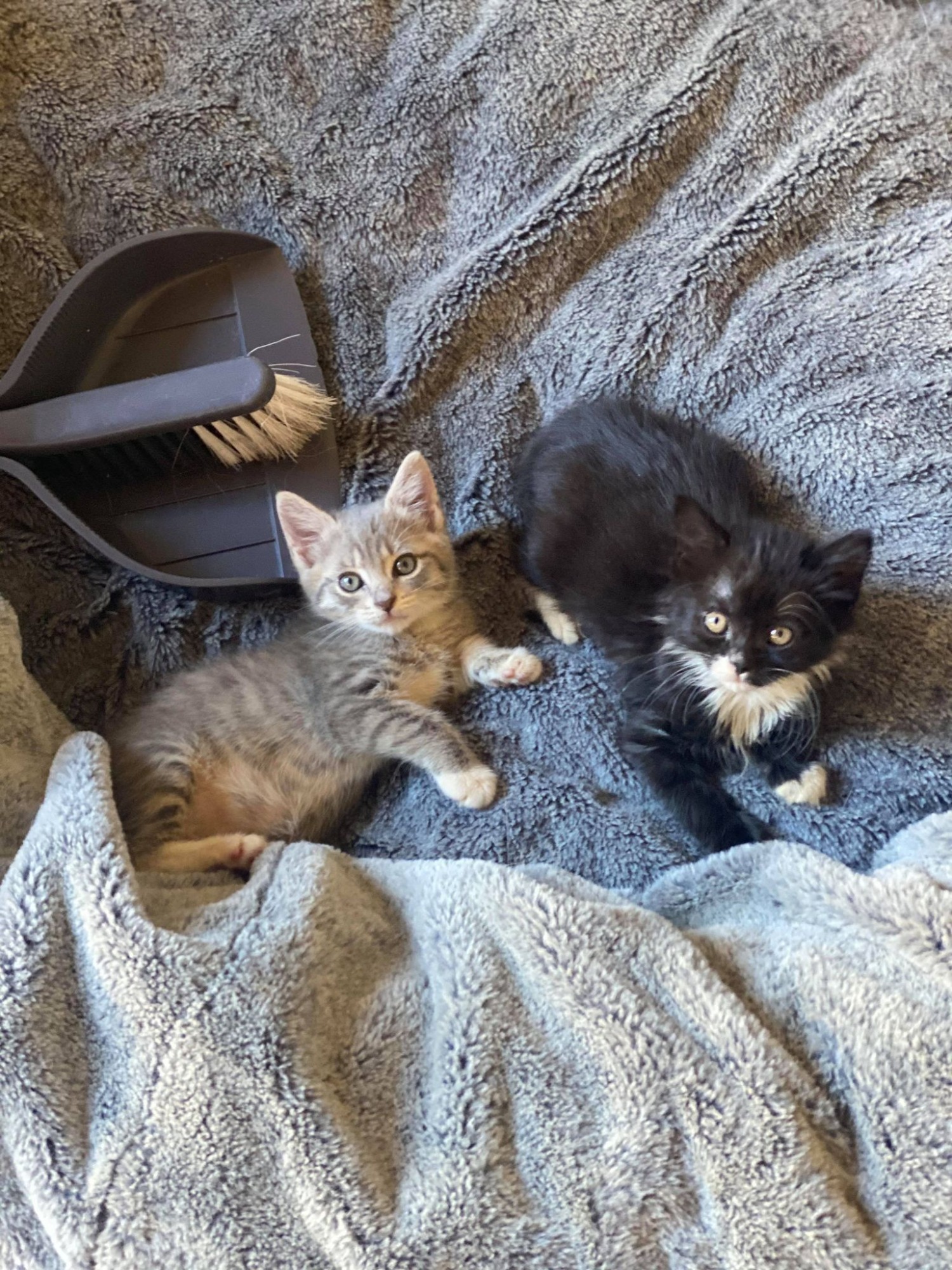 Agnes is now approximately 14 weeks old and ready for her forever home. Agnes is the BLACK & WHITE kitten in the photos