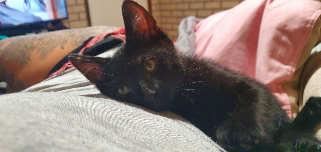 He was shy at first, but now is very trusting of his carer and gets on well with the household's other cats and dogs.