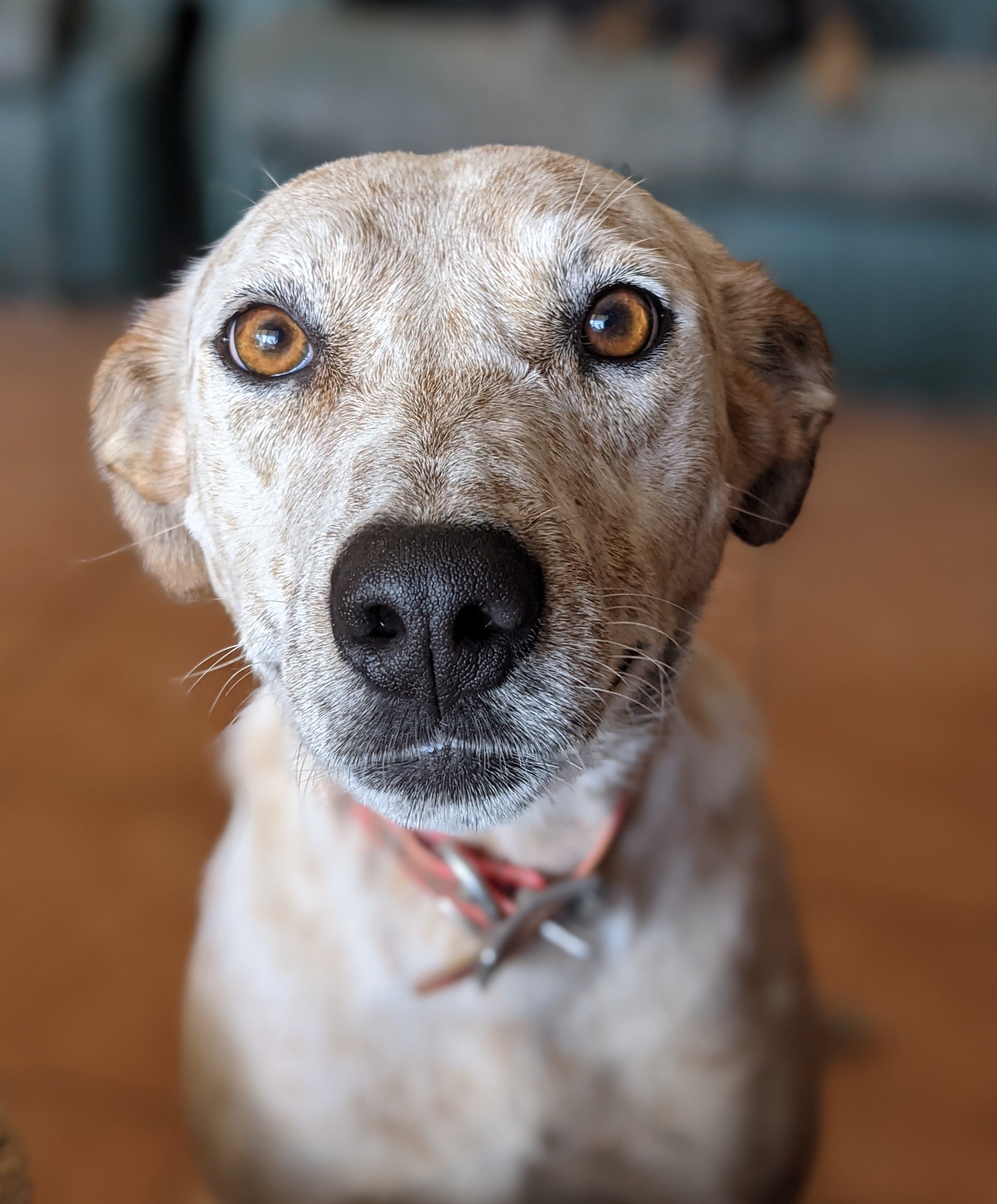 Marmalade has shown to be good with all sizes of dogs from 2.5kg to 65kg and is hoping for a home that can continue her socialisation and training as she grows.