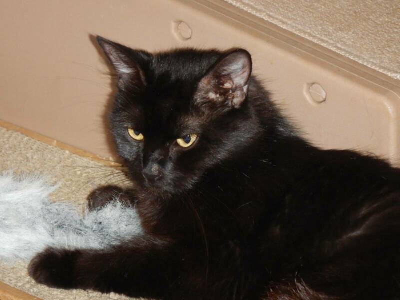 I am the sassy Eartha! You will be bewitched by my dark beauty and seduced by my affectionate nature. I have a glorious silken medium length coat, the most gorgeous yellow eyes, a fox-like tail and a set of lungs like my namesake. I would make you the perfect companion because I seek human company. I envisage my ideal family has someone who primarily stays at home and would welcome my affections, and preferably has no other cats. My needs are simple: plenty of petting, someone to talk to, good food, a warm comfortable bed and lots of brush strokes to maintain my beautiful coat.