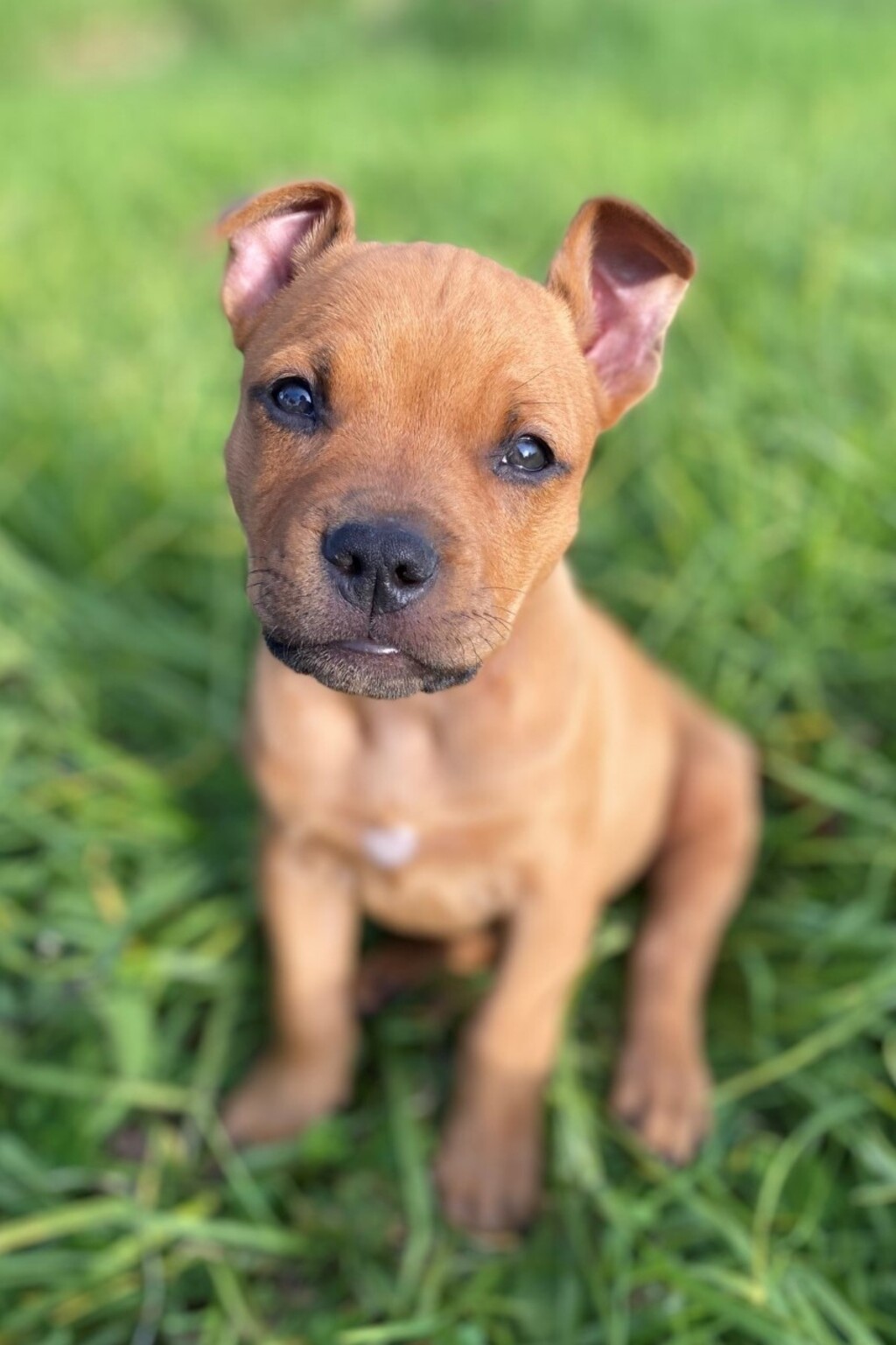 WILBUR #2730 is one of the 6 week old staffy cross brothers. This gorgeous pair are going to grow into medium height but quite heavily built dogs and are already very solid pups. Both boys are happy, forward fellows and will make excellent companions if time is put into their exercise and training. They are very much in the mouthing/chewing stage at the moment so will need guidance as to what is appropriate to chew (not hands and feet!!) and will need lots of chew toys! Can you make one of these lovely pups part of your family?