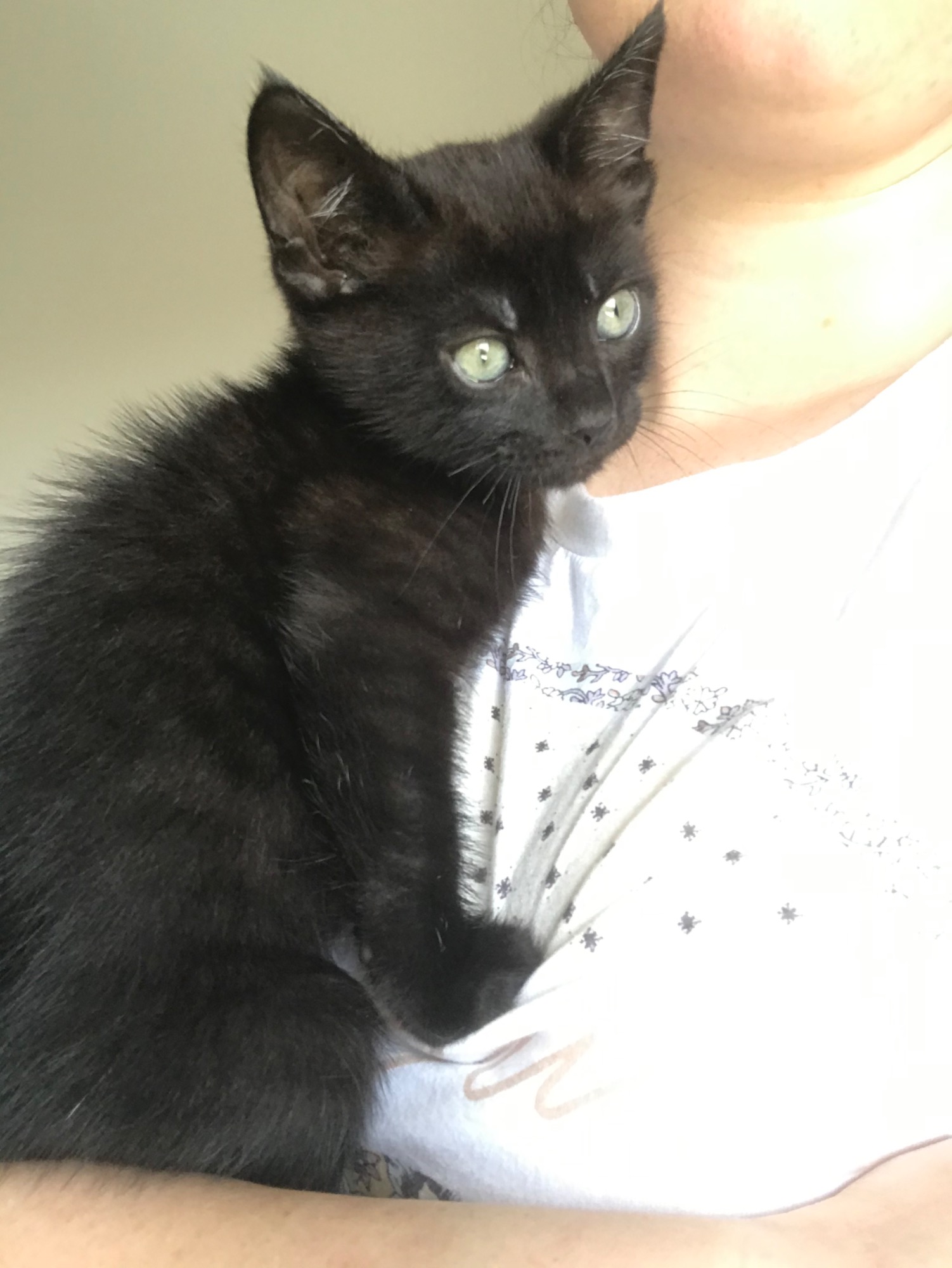 Pluto enjoys a cuddle and will curl up next to you or on your lap when he’s had enough playtime. He gets along well with other kittens and cats. He’s still deciding if the resident dog is a friend.