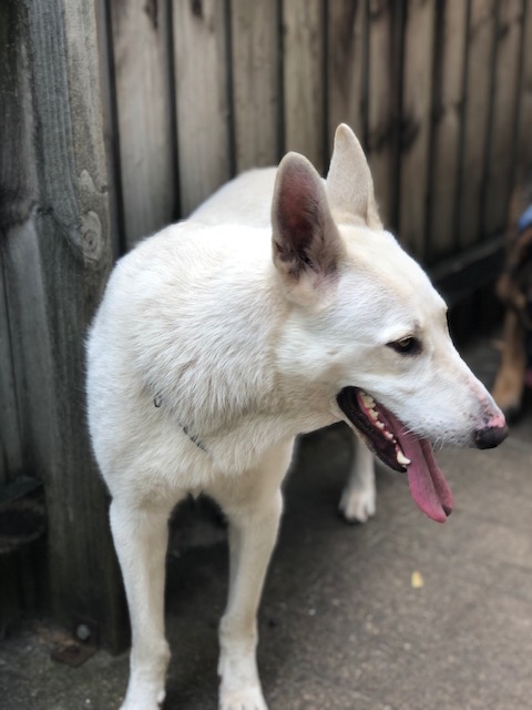 Gaston is a two year old white German Shepherd whose owner has made the hard decision to find him a new home.