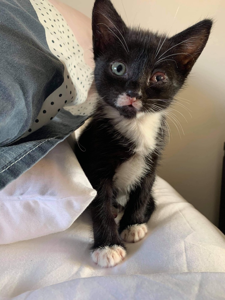 Popeye started life with only one eye open for his first 5 weeks. He is now 17 weeks old, however due to the infection in his eye when he was just a bub, his left eye appears winky and sometimes weepy. He has great vision, but will need a bit of extra TLC keeping his eye clean. This can be done by simply wiping with a tissue daily. He’s been checked by an eye specialist who said scar tissue has blocked the tear duct which would usually drain into his nose and throat, but now they just come out of his eyes instead. He doesn’t need surgery, he’s not in pain, his eye is just a little more lubricated than normal!