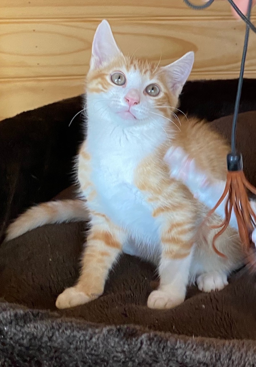 Oliver is a super friendly kitten. He is a 14 week old short haired Ginger who just can’t get enough of this world. Oliver is a little ball of energy. He’s always first out of his carrier, tumbling around with one of his kitten friends or climbing the walls of his crate.