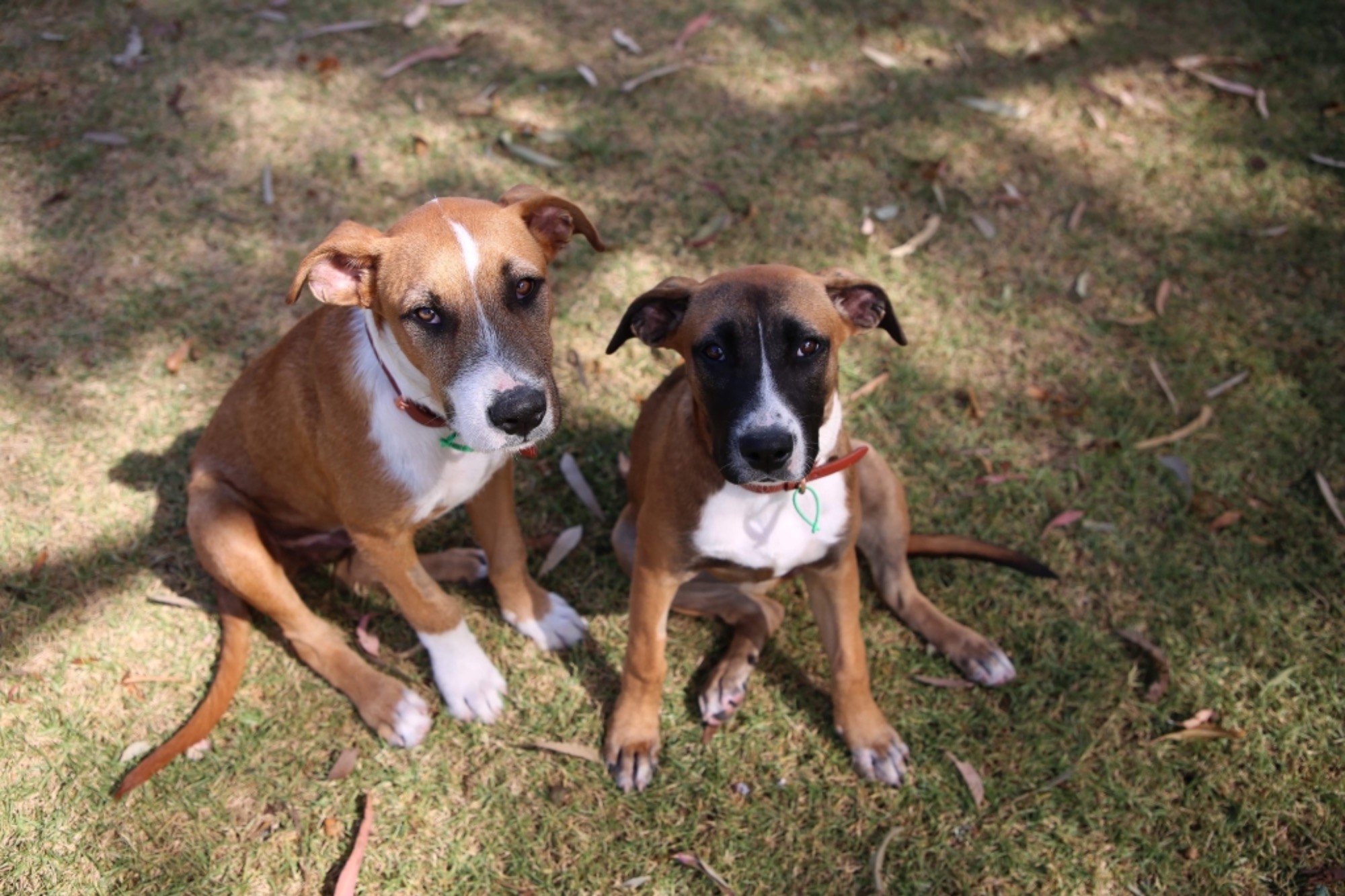 We are around 5 months old and like to run, play ball and spending time with our foster family. We can sit, drop and stay. We like making new friends, we are super friendly with other animals and humans, we are not yet house trained.